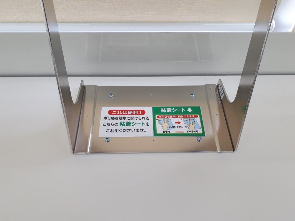 レジ横やサッカー台に設置することでポリ袋の開封ストレスを軽減。